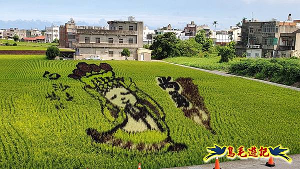 今年苑裡稻田彩繪有2景點-天后駕稻、侏羅紀世界,搭設2處3層樓高觀景台,在山腳辦事處對面的是侏羅紀世界,