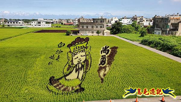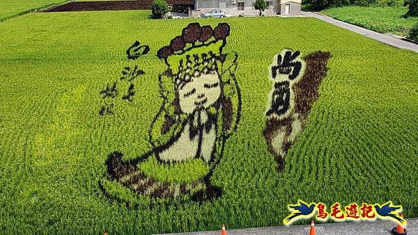 今年在愛情果園前的稻田彩繪,主題為「天后駕稻」,以白沙屯媽祖為創作核心,這是苑裡鎮農會稻田彩繪邁入第24年以來,