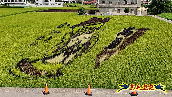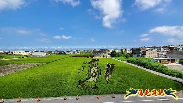 到達彎麗路101號的苑裡鎮農會山腳辦事處,觀賞苗栗苑裡景點【2025苑裡稻田彩繪】天后駕稻、侏羅紀世界,