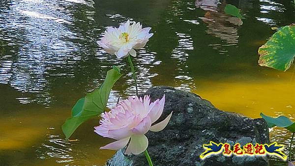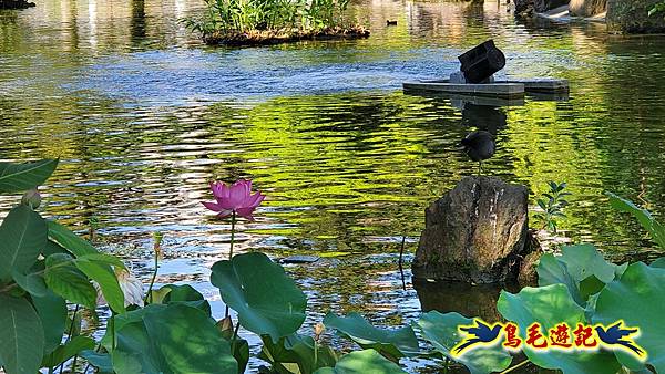 池裡的荷花雖然個頭較小,也是有紅色、白色、粉紅色花,單瓣、複瓣品種,還有鯉魚、紅冠水雞、烏龜...