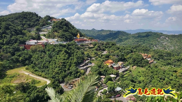8:01小高地觀景點,設有座椅可供休息,可遠望南勢角山山腰間的烘爐地土地公廟,此時位於土地公神像的左前方。