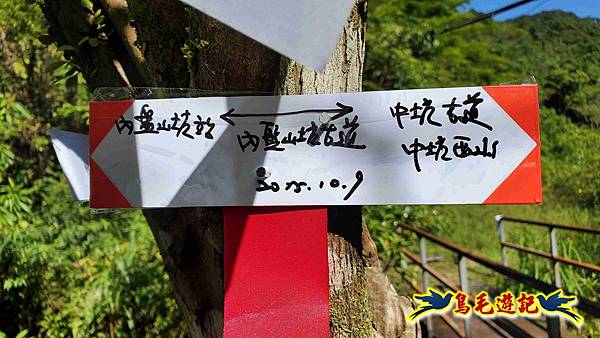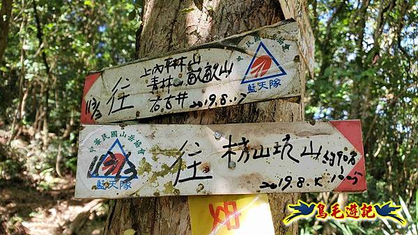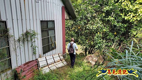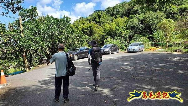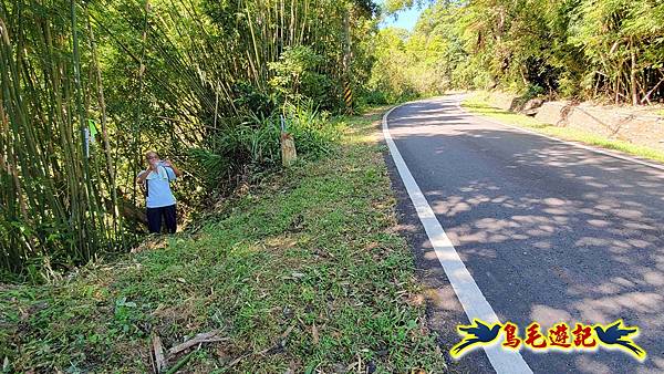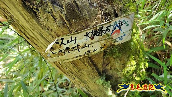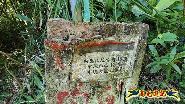 Fuli車停內盤山站前柚子樹下,我2人今日再同行,8:54木頭電桿新指標進入往內盤山坑古道。