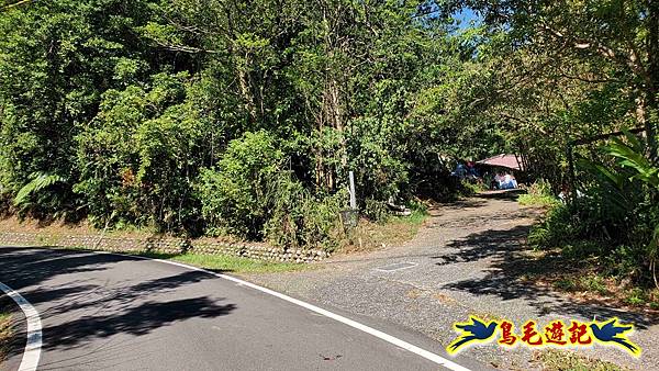 9:19石硿子越嶺古道登山口,位於產道與民宅水泥叉路的夾角中間。