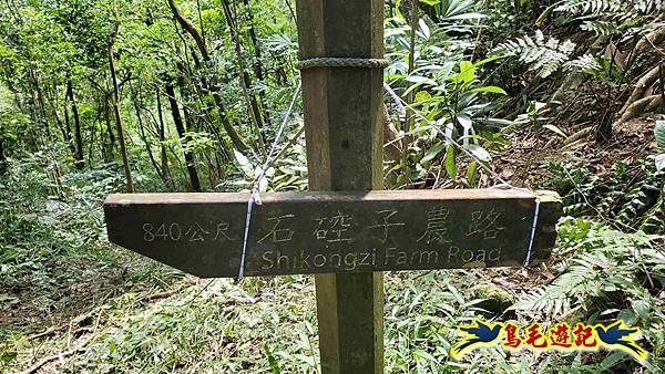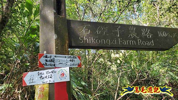 9:26水泥路至此結束,新指標右轉上坡是越嶺石硿子/善覺寺,開始轉為自然山徑土路,