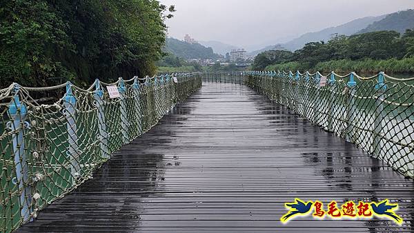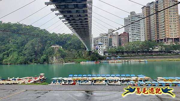 來到新店渡渡口,此地是全台唯一人力擺渡渡口,還有約200公尺的浮筒自行車道沿著新店溪設置,