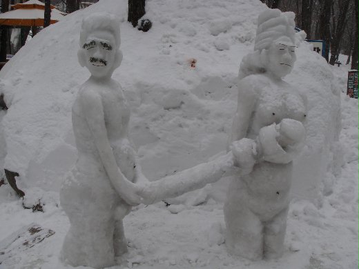 在進入雪嶽山入口,通往新興寺的途中,小店的男老闆創作了這個有趣的雪雕。