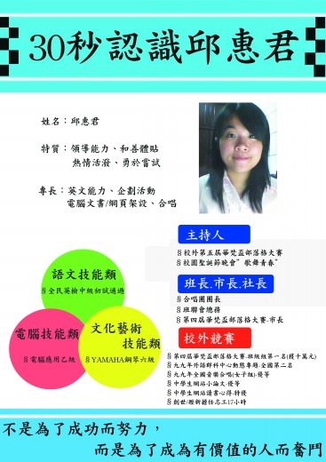 在惠君的自傳,我說我勇於嘗試這項特質很不一樣對於我而言,就因為這樣