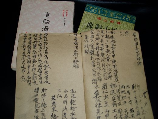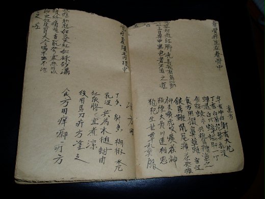 還有一本手抄本的中藥配方 已經被蛀一大角