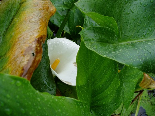 雨中海芋花兒很美 而且海芋還有新品種分為白色海竽 綠色海竽 以及 香水海竽