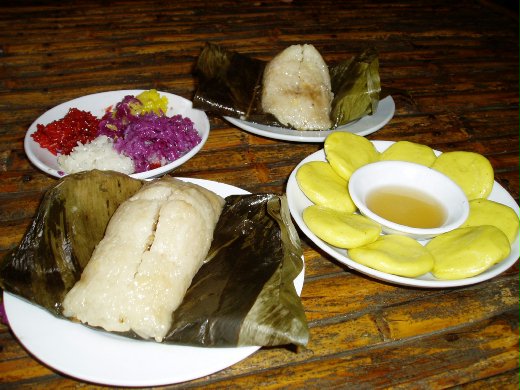 壯族是好客的民族 愛吃甜吃......圓形黃色的粑是沾蜂蜜糖水