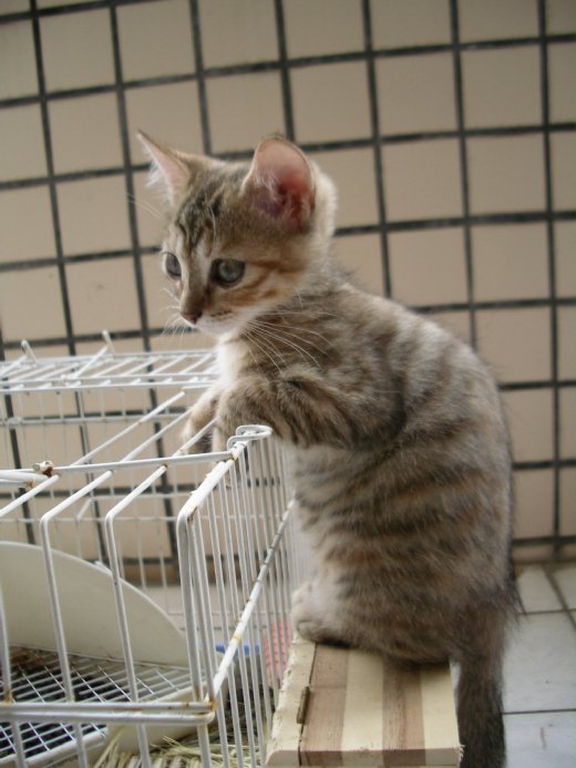 在那一對貓咪兄弟之間,他他選了一隻橘白相間的小花貓。「因為這隻看起來活潑健康多了,牠在籠子裡一直不斷吸吮著牠兄弟的腳指頭,那模樣真是可愛極了!」他他說。