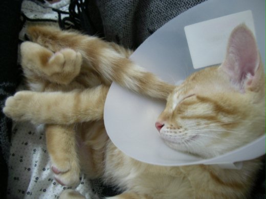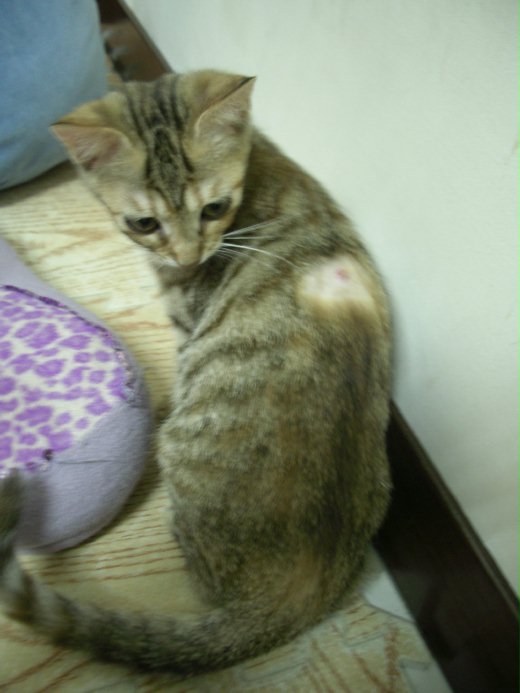 MiSo呢,最近被我戲稱為「機器貓」,因為上次回診牠背部的傷口(之前的那個腫塊),已經開始結痂,醫生是建議可以剃傷口附近的毛,比較好照顧牠的傷口,當時心想,應該滿小塊的吧就答應了,醫生一下手,我就超級後悔了,在MiSo的背後,方方正正一塊沒有毛,加上中間一個結痂的小紅點,剃完當場脫口而出,哇~好像機器人的背後按鈕喔!!!!不過回家之後,外觀上雖然有點小醜,不過DoLa完全沒有嫌棄或嘲笑MiSo,倒是我的室友們,笑得挺大聲的嘛(要笑也小聲點啦…)。