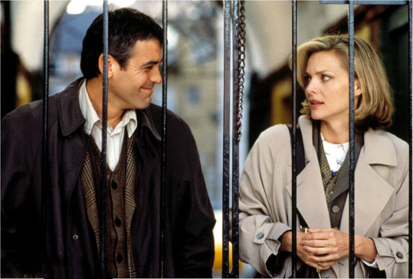 劇中喬治克隆尼對蜜雪兒菲佛一見鍾情,本想好好表現一番,沒想到適得其反,招致蜜雪兒菲佛犀利言語反擊,兩人頻頻拌嘴,吵著吵著竟然情愫漸燃……