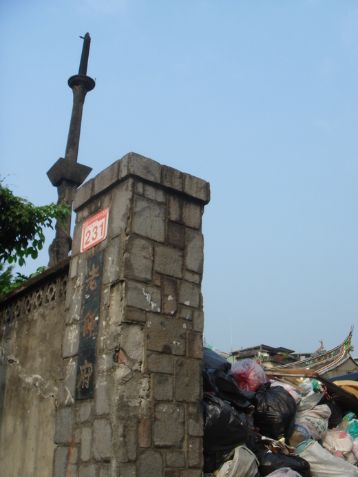 然而陳玉梅議員日前於「老師府」附近進行會勘時,卻意外發現在「老師府」大門口旁的廣場上,竟已堆放滿近一個人高的垃圾與工程廢棄物,再加上經年未除的雜草,將「老師府」的「石旗桿」古蹟地標重重包圍,隨處都看得出主管機關怠惰,古蹟明顯年久失修的痕跡。現場狀況不僅讓人完全無法感受到身為直轄市定三級古蹟應有的尊嚴,現場雜亂的現況,對於當地居民的生活品質及環境衛生,顯然也已經構成嚴重威脅。