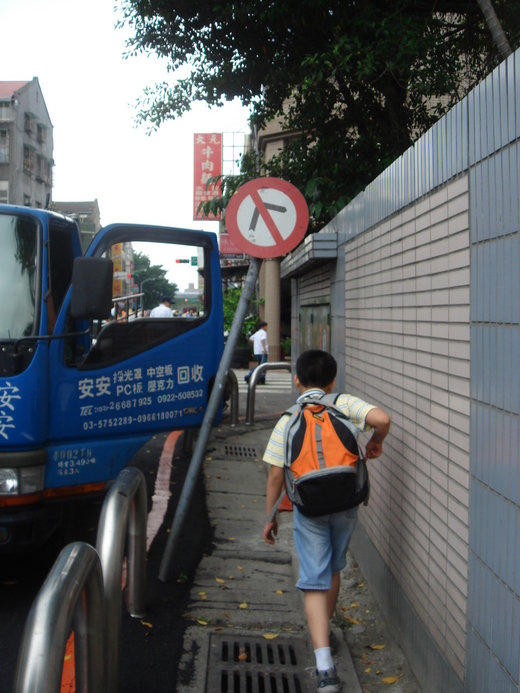 有突起、有縫隙、有狗屎、有歪斜的標誌桿阻路 學童行進好安全?!
