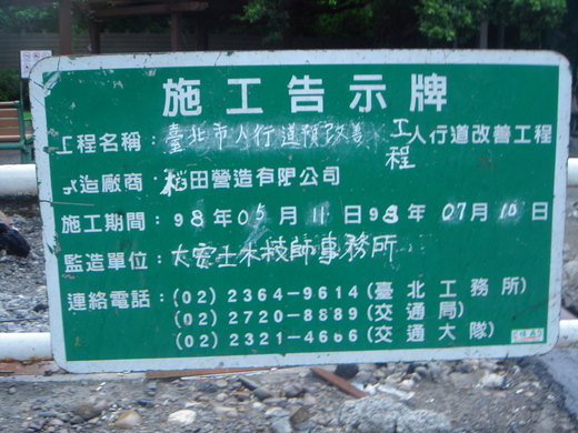 此外,經現場勘查也發現,新工處在施作該段人行道整平時,竟未以單向逐段方式進行整平,而是將整段800多公尺的人行路面全部翻起,然後以東整一塊、西補一塊的方式進行工程,根本亂無章法。而且經進一步了解,甚至連該人行道整平工程的施工告示牌,在工程名稱、施工廠商、施工期間與監造單位等資料,竟然全都是以手寫的方式臨時進行修改、填入,甚至連台北工務所的聯繫電話都是空號,這樣的告示牌不僅可信度讓人存疑,這樣的工程安管品質,實在讓人搖頭,難怪民怨四起。