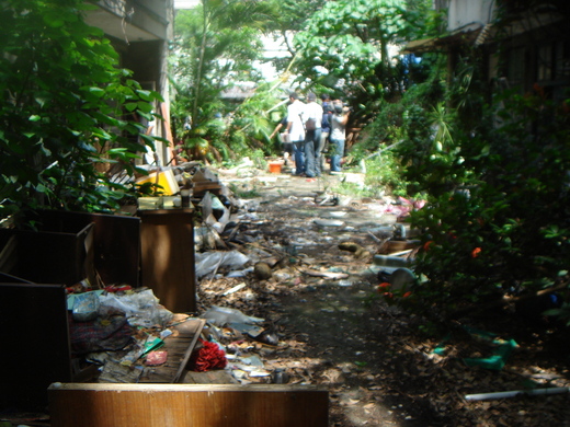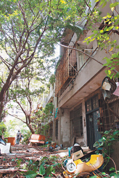 進入這塊原本屬於公賣局的宿舍用地,不但門窗玻璃毀損,更誇張的是,廢棄家具和垃圾堆滿一地,雜草叢生成了蚊蠅和跳蚤的溫床,還有遊民就在這兒聚集,很難想像這樣一塊廢棄的公有地,竟然就位在寸土寸金的台北市中山區。