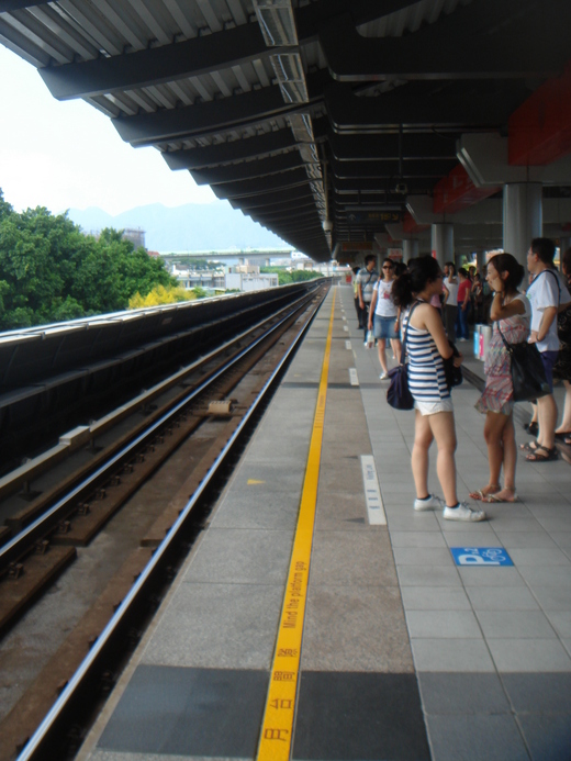 以高雄捷運為例,高捷除於地下各站皆設有月台門,並於門上設有警示燈外,就連高架路段全線,月台邊也都全部設有月台警示燈,以作為提醒民眾列車即將進站使用。而且高捷候車各站月台也都隨時維持至少1名的站務保全人員與現場進行指引,保障民眾候車安全可謂滴水不漏。但反觀台北捷運淡水線高架路段,不僅沒有任何列車進站警示設施,就連尖峰時間,保全人員也常不見蹤影,高雄捷運「青出於藍卻更勝於藍」,台北捷運對於民眾候車安全維護確實應該再多加把勁。