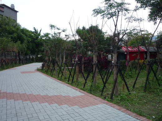 經現場勘查、清點發現,新建工程處「跨越圓山抽水站前池便橋」工程於民族公園人行步道兩側新種植的89棵路樹,目前已有28棵完全枯死。而還存活的路樹中,除有2棵也呈現半枯狀態外,其他樹苗看起來也都明顯「營養不良」。民族公園內為了延伸「花之隧道」工程概念而新種植的路樹,在距離花博會還有半年的情形下,卻有3成以上已經「出師未捷」。照這樣的養護進度下去,只怕還沒到花博開幕,該公園內新植樹木恐怕早已全軍覆沒。