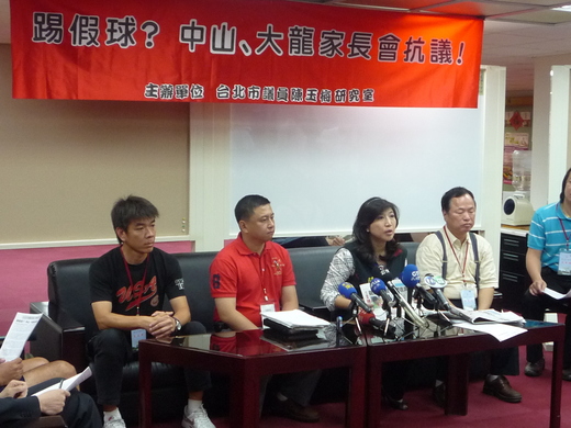 中山國小與大龍國小家長會及足球隊教練,昨天則在台北市議員陳玉梅陪同下召開記者會,陳玉梅激動駁斥:「和局本來就是足球賽制的戰術運用,小球員遵守教練的戰術指示,竟然要面對和職棒打假球一樣的指控,真是不白之冤。」