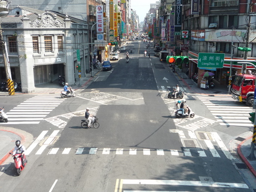 沒擠進「路平專案」的資優班,馬路就這樣修修補補,品質難堪,路面凹凸就像城市的青春痘疤,斑馬線也有陰陽不同膚色,行人標線的交會點,更是面目全非。