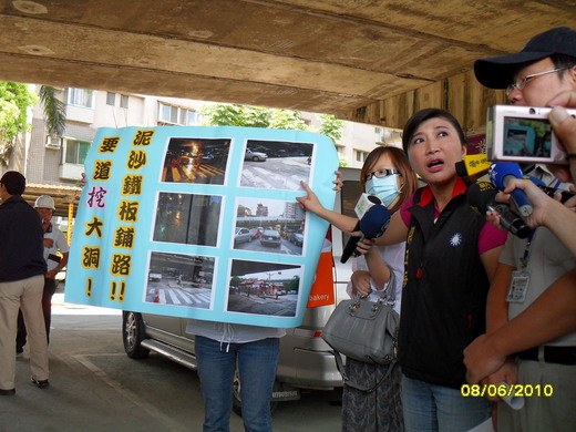 陳玉梅議員批評,水利處包商評審過程根本就是玩假的,也未善盡監工之責!如今當初擔心工程影響交通,影響道路使用人權益等問題,現在已一一浮現,市府作為在哪裡?放任包商隨便挖、隨便補的結果,不僅影響當地作為重慶北交流道替代道路之交通功能,在施工品質不佳,工區與車行路面毫無阻隔下,路上的處處碎石、廢土、爛泥與鋼板,也已嚴重危害出入民眾安全。一個1百多萬小工程,卻讓重慶北交流道重要替代道路打結,專業表現令人嘆為觀止。