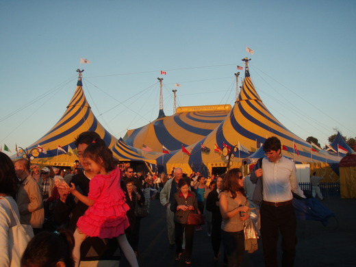 同事的友人買了馬戲團的票,卻臨時無法去看,想要把票賣出,用四十五美元開了一張票,準備好好欣賞藝文演出。我開了一個多小時的車程,才找到搭在河邊帳蓬,由於路不熟,遲到了廿多分鐘,但從一坐定,就沒有冷場,開始了視覺與聽覺的饗宴。