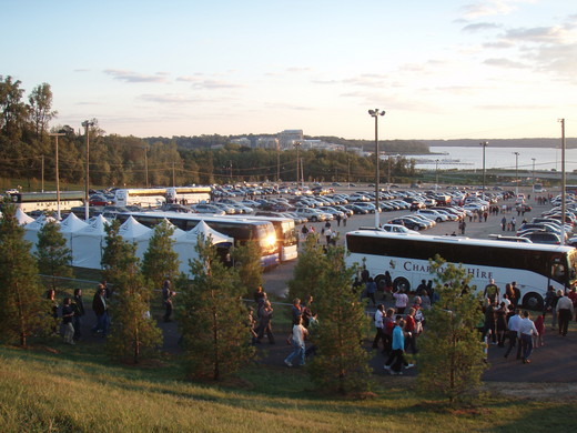 老外喜歡這些藝文活動,所以很多老老少少搭遊覽車前往觀賞,但停車還要再付十二美元,連場內的販賣區,爆火花加兩杯可樂,要價廿四美元,價格比外面三級跳。