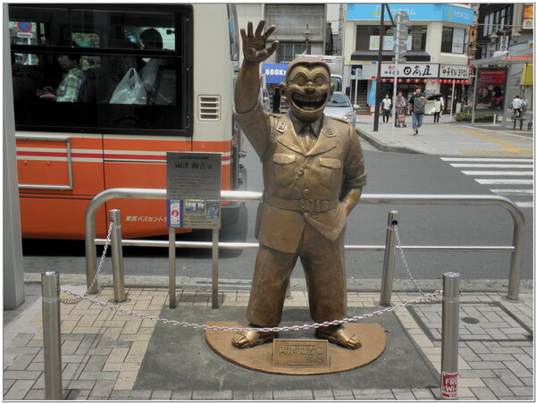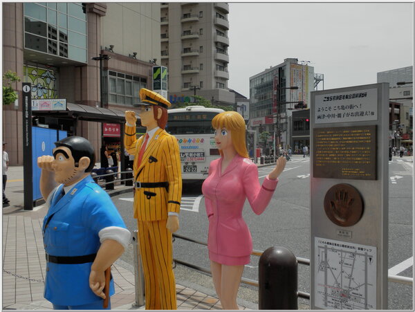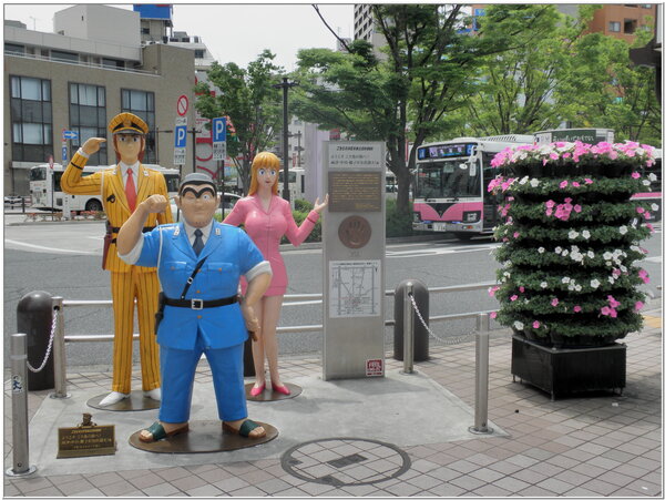 日本國內最受歡迎的雕像首推第一名,雖然不是偉大的政治人物,而是一位虛構的卡通人物『兩津勒吉』的卡通『烏龍派出所』中的主人翁,因其個性敦厚海派具有傳統江戶男兒的特色,因此,廣受台、日坊間粉絲的歡迎喜愛。