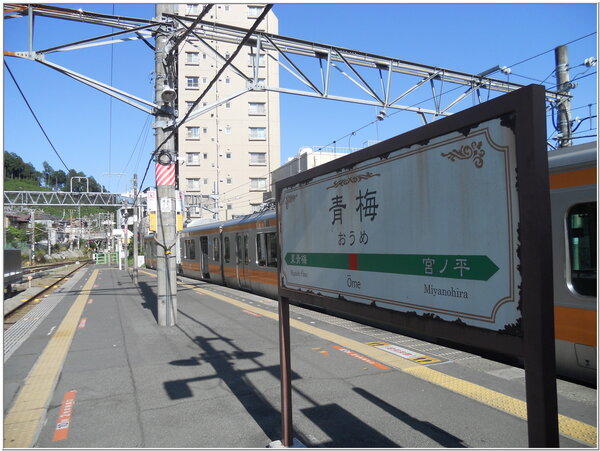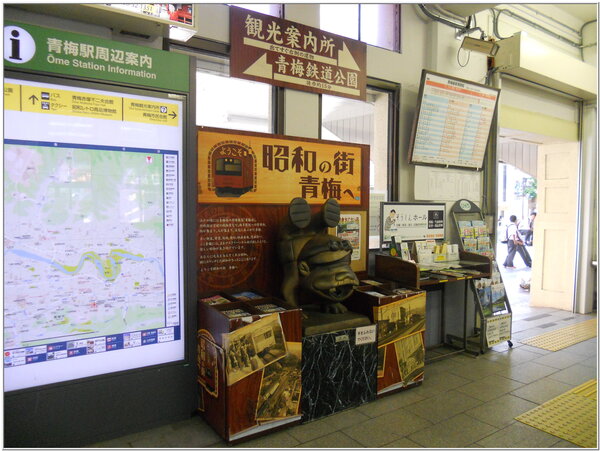 東京近郊『下町』~青梅市,おうめ昔日稱『青梅宿』江戶時期與甲州現今〈山梨縣〉之間途經重要中繼驛站,搭乘JR中央線電車,必須在立川駅第3月台轉乘青梅支線,距離東京約90分鐘車程,極適合東京近郊一日遊踏青,青梅駅一下車穿越地下月台走道立即讓外地遊客感受彷彿回到昭和年代時光的日本。青梅市,位於東京西方丘陵地郊區,居住人口約13萬人的寧靜古老下町地方。