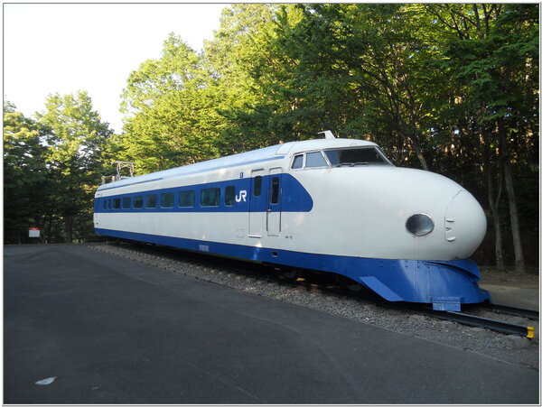 【下圖照片:青梅鐵道園區秘境內展示60年前第一代新幹線子彈列車外貌】