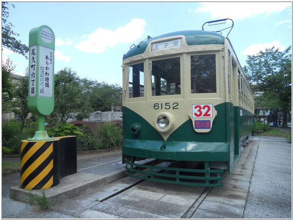 【下圖照片:あらかわ鉄道遊樂園區內古董路面電車的展示】