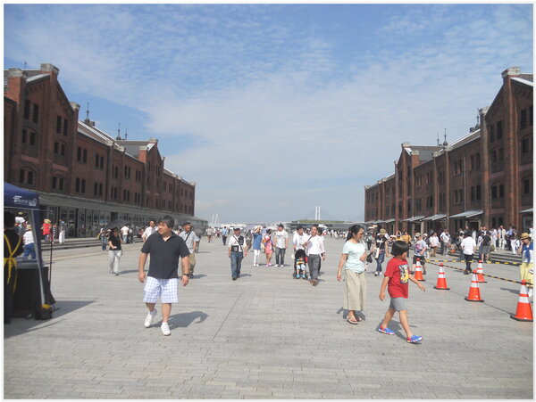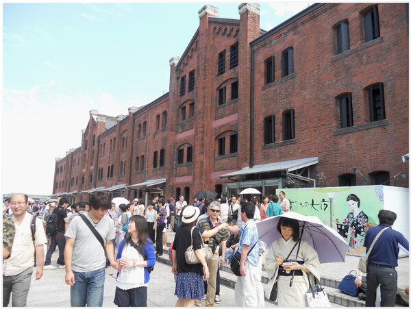 【上、下圖照片:橫浜港區兩棟紅磚倉庫の假日人潮購物遊憩情景】