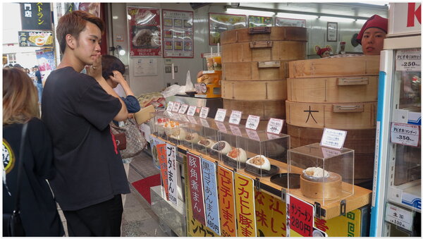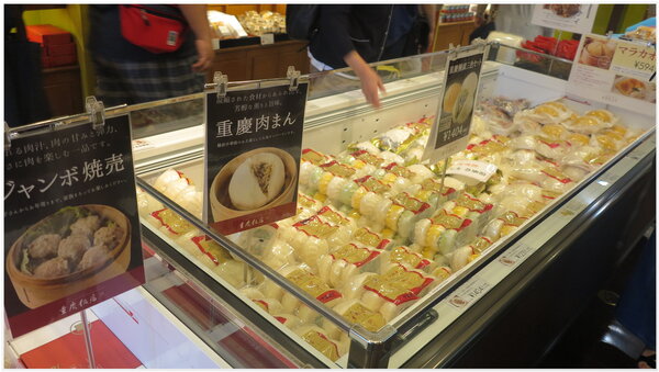 【上、下圖照片:橫浜~中華街販售大肉包子商品情景】