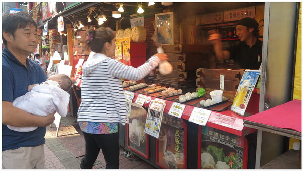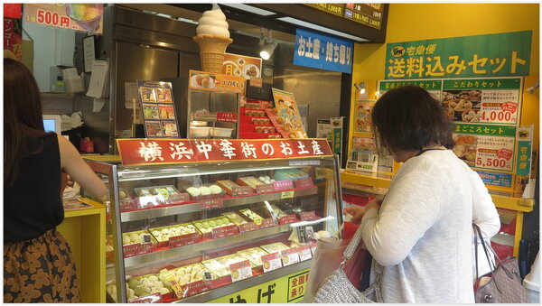 【上、下圖照片:橫浜~中華街包子店及土產店家情景】