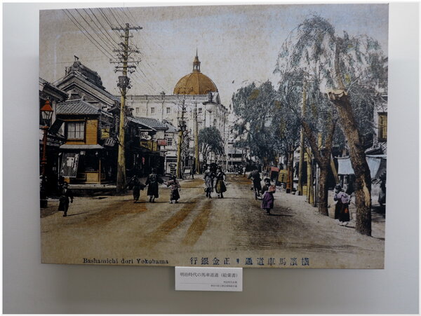 【下圖照片:160年前~橫浜『馬車道』(背景銀行街景)景觀】
