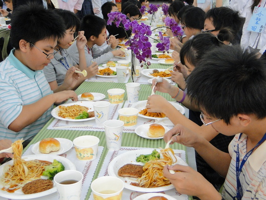 隨後由學校廚房提供每位學生一份西餐,搭配刀叉與餐巾等用具,實