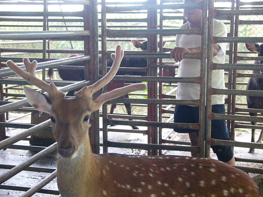 種梅花鹿,該隻梅花鹿飼養第一年時頭上沒長出鹿茸,第二年只有二