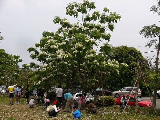 古坑鄉荷苞山露營區桐花公園昨天湧入大批賞花人潮,許多民眾攜家