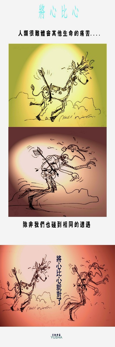 人們如果不能理解動物中箭的痛苦,那麼只要身處其地,便能得到同等的感受。