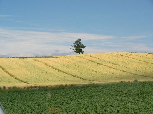 美瑛,使我頻頻回首的就是這樣連天的麥田、綠野、藍天,並且一定不能沒有,那一棵樹。