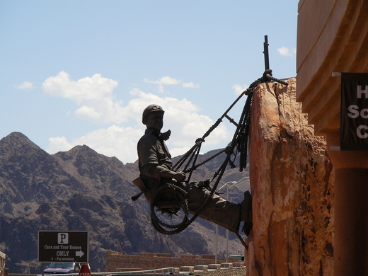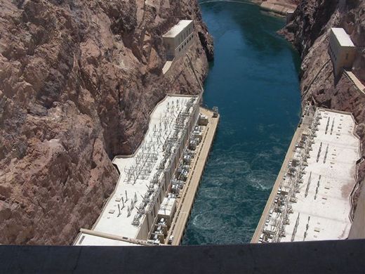 在氣勢磅礴的胡佛水壩外,照片是老公拍的,因為我和小孩躲在陰影裡,絕不肯站到那豔陽下!