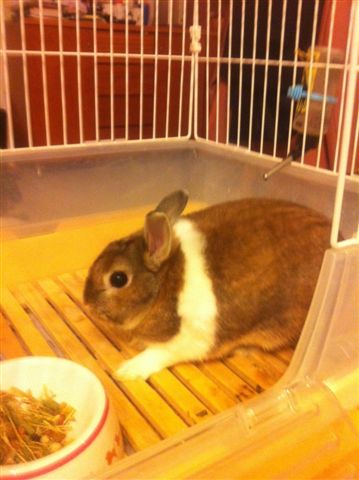 他餘悸猶存,千方百計阻止我再養動物,但我只要一見到小動物,心就整個融化了。先是楓葉鼠、黃金鼠,鼠鼠真厲害,一個月就能有肚子!我開始得寸進尺,那天在賣場結完帳,走向停車場時,他隨口說剛剛那邊有人賣小兔子還滿可愛的,我跟小孩立刻丟下推車回頭去找,等他放完東西尋回寵物區,我已經抱著一隻比黃金鼠大不了多少的小兔子死也不肯放手。我跟小孩像兔子一樣在他面前跳個不停:「養一隻啦!拜託拜託養一隻啦……」我強調老闆說這隻是荷蘭侏儒兔,身長最多只能長到