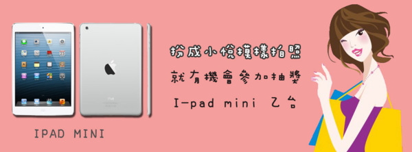 照片獲得最多”讚”者,即可獲得IPad Mini一台(16G WIFI版)喔!!