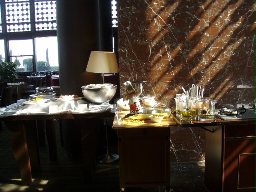 我們住的飯店高級潔淨. 早餐的buffet沒有嘈雜的人群, 我永遠也忘不了在靜靜的早晨中, 坐在猶如阿拉伯皇室高級傢俱餐具擺設的飯店餐廳, 伴著沙漠的陽光從挑高的落地窗中灑入, 那半開的白紗窗簾, 在金黃色的陽光和美麗顏色的果醬餐盤間跳躍, 彷彿是人間仙境, 那高級銀製餐具和磁器碰撞的聲音, 顯得格外突兀.