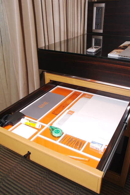 台中新開幕的Hotel One位在經國綠園道旁, 延著園道散步到美術館約需15分鐘, 途經現在最熱門的台中四大豪宅區之一, 邊散步邊欣賞, 台中的房子蓋得真的比大多數的台北新住宅大樓好看太多了, 難怪大家爭先恐後來台中搶房子! Hotel One時尚科技, 現代感的活潑橘色系的裝潢讓人賞心悅目, 不再是一天到晚咖啡色白色死氣沉沉. 我總覺得台灣人對裝潢的創意太少, 又太保守, 居家總是漆成百合白, 乳白, 不然就是象牙白, 單調無趣, 建議大家去看看Hotel One 的設計, 我覺得不管是硬體設施與裝潢設計, 或是旅館服務人員的貼心服務, 皆具國際都會時尚現代感的高水準, 創意與巧思中不忘舒適與放鬆, 真的是好!