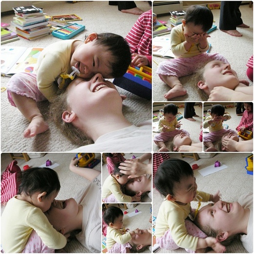 現在 Ingrid 感情也變得豐富,不吝惜表達她對我的愛。我只要和她說「抱抱」,她就會過來用雙手環抱著我的頸。這遊戲讓我百玩不厭。心情好時,也常主動過來親我。只是技術不太好,常親得我滿臉口水。她似乎很在乎我的感受。當她惹我生氣,我只要轉過頭去假裝生氣不理她,她會馬上跑到我面前直盯著我看,拼命地裝可愛對我笑,然後緊抱著我,好像怕我不要她。她那模樣真的好惹人憐愛,讓人不忍再生她的氣。我也立即回以笑容,把她緊緊抱在懷裡。再和她講我生氣的原因,希望她以後要乖乖。