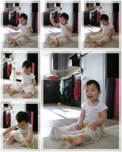 前一篇的成長記錄中還有項大事我沒提到,就是現在的 Ingrid 好愛講話。不只自己會嘰哩咕嚕地講,也會重覆別人對她講的話。不論是中文還是英文,她都照單全收。連聽 CD 的童謠,也都會試著想要重覆裡面的單字或短句喔!再搭配她懂得的手語,這小傢伙開始和我們溝通啦!