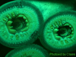 【吸附在水族箱玻璃上的八目鰻尖牙利齒,也頂嚇人的呢…】