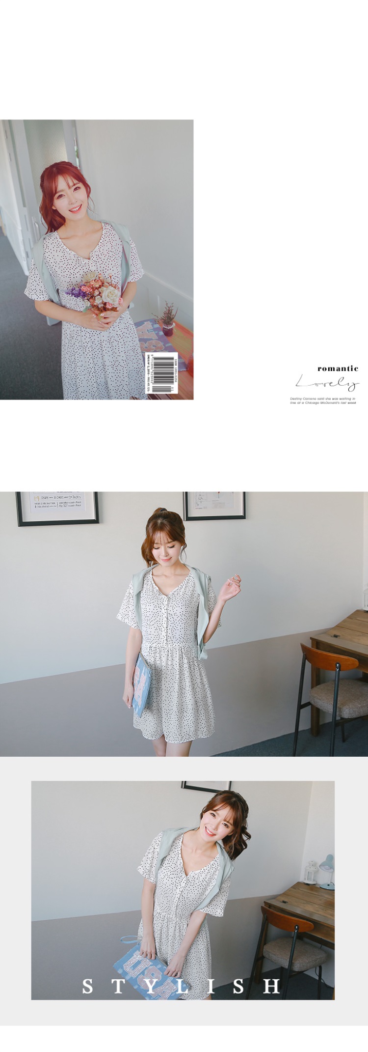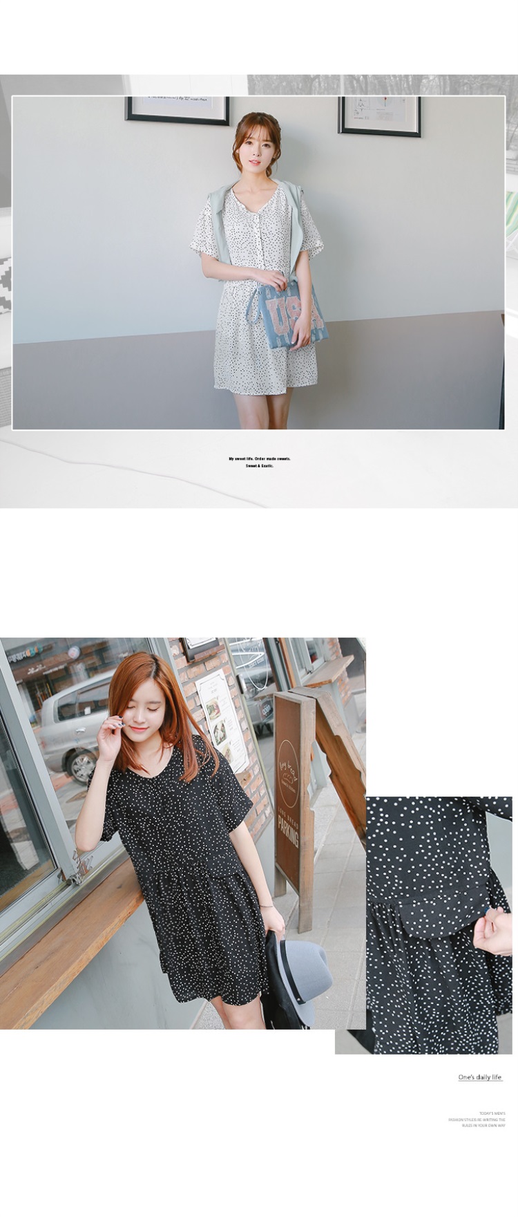 信用貸款率利0531新品 半開襟點點印花假口袋造型娃娃洋裝.2色